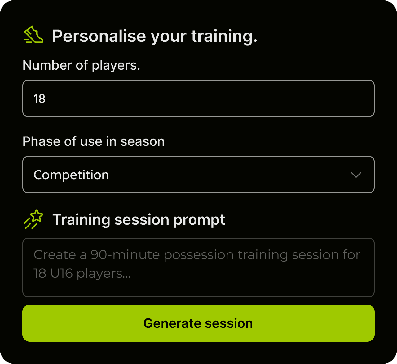 Everything you need to plan, organize, and execute world-class training sessions, powered by AI and built for coaches who demand excellence.